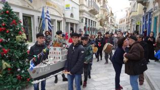 Πρωτοχρονιάτικες ευχές, ασπασμοί και θερμοί εναγκαλισμοί ζέσταναν το πρωί της Πέμπτης την παγωμένη Ερμούπολη, κατά τη διάρκεια της περιοδείας των φορέ...