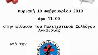 Σεμινάριο πρώτων βοηθειών διοργανώνει η ΕΟΔ Κυκλάδων την Κυριακή 10 Φεβρουαρίου στις 11 το πρωί στην Αίθουσα Πολιτιστικού Συλλόγου Αγκαιριάς.