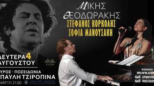 Μία μοναδική συναυλία με έργα του αξεπέραστου Μίκη Θεοδωράκη, υπόσχεται στο κοινό της Σύρου ο Στέφανος Κορκολής, ο οποίος θα εμφανιστεί στις 4 Αυγούστ...