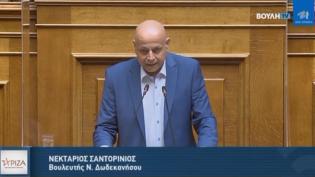 Παρατίθενται σημεία από την ομιλία του Τομεάρχη Ναυτιλίας και Νησιωτικής Πολιτικής και βουλευτή Δωδεκανήσου του ΣΥΡΙΖΑ-ΠΣ, Νεκτάριου Σαντορινιού, στη ...