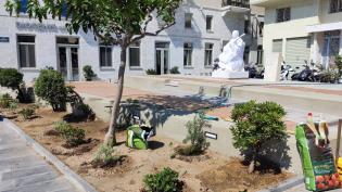 Εκτεταμένες εργασίες φροντίδας των παρτεριών που περιβάλλουν το τμήμα της πλατείας Παπάγου επί του οποίου τοποθετήθηκε το άγαλμα του Μάρκου Βαμβακάρη ...
