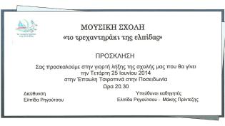 Αυλαία ''πέφτει'' για την μουσική σχολή '' Το τρεχαντηράκι της ελπίδας'' με τη γιορτή λήξης της σχολής αύριο στις οκτώ και μισή το βράδυ στην έπαυλη Τ...