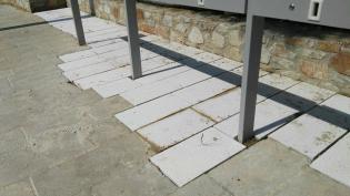 Στην τοποθέτηση μαρμάρινων πλακών που έλειπαν από μεγάλο τμήμα της επιφάνειας που δημιουργήθηκε ο ποδηλατικός σταθμός πλησίον του σούπερ μάρκετ “Μαριν...