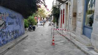 Αποκατάσταση που προκάλεσε αντιαισθητικό αποτέλεσμα στο παραδοσιακό πλακόστρωτο της οδού Κάσου, τον δρόμο που εξυπηρετεί την Αστυνομική Διεύθυνση Κυκλ...