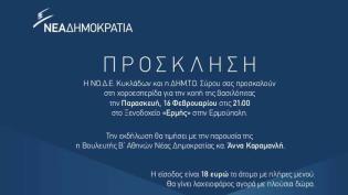 Την ετήσια εκδήλωση κοπής της πρωτοχρονιάτικης βασιλόπιτας συνδιοργανώνουν η Δ.Ε.Ε.Π. Κυκλάδων και η ΔΗΜ.Τ.Ο. Σύρου της Νέας Δημοκρατίας, την Κυριακή 15 Φεβρουαρίου 2026, στις 18…
