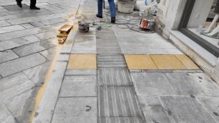 Τοποθέτηση σωστών πλακών στα πεζοδρόμια της οδού Ελ. Βενιζέλου στην Ερμούπολη, για την εξυπηρέτηση των συμπολιτών μας με λευκό μπαστούνι