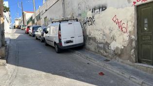 Συνεχίζεται το παράνομο παρκάρισμα στον στενό δρόμο της Ερμούπολης πίσω από τον ναό Κοιμήσεως