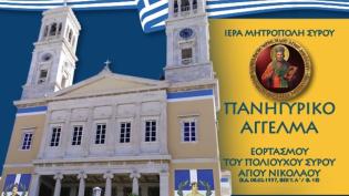 Το πρόγραμμα των εορταστικών εκδηλώσεων για τον Πολιούχο της πόλης, Άγιο Νικόλαο στις 6 Δεκεμβρίου γνωστοποιεί η Ιερά Μητρόπολη Σύρου μέσω του επισυνα...