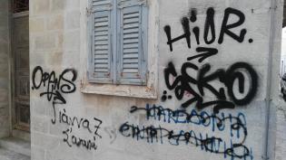 “Φρέσκα” συνθήματα, γκράφιτι αλλά ακόμη και βωμολοχίες διαπιστώνονται στις επιφάνειες κτιρίων της Ερμούπολης, καθώς ασυνείδητοι προέβησαν στην καταστρ...