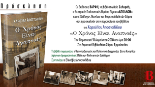 Πρόσκληση για την παρουσίαση του βιβλίου της Χαρούλας Αποστολίδου "Ο Χρόνος είναι Αναπνοές". Η παρουσίαση θα πραγματοποιηθεί την Παρασκευή 31 Αυγο...