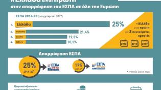 Για τρίτη συνεχόμενη χρονιά η Ελλάδα βρίσκεται στην πρώτη θέση μεταξύ των χωρών μελών της Ευρωπαϊκής Ένωσης για την απορρόφηση του νέου ΕΣΠΑ 2014 – 20...