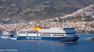 Οι δύο αδελφές Ναυαρχίδες της Blue Star Ferries σήμερα το απόγευμα είχαν μια εντυπωσιακά σπάνια, ταυτόχρονη άφιξη στο λιμάνι του Πειραιά. Το Blue S...