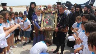 Με Ευγνώμονες και πηγαίες εκδηλώσεις αγάπης και τιμής ,η Σύρος αποχαιρέτησε σήμερα το πρωί στο Αεροδρόμιο την Εικόνα της ''Παναγίας Σουμελά''. Ιδιαίτε...