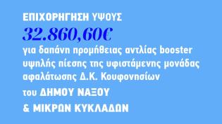 Υπεγράφη σήμερα από τον Γενικό Γραμματέα Αιγαίου και Νησιωτικής Πολιτικής κ. Μανώλη Κουτουλάκη απόφαση επιχορήγησης του Δήμου Νάξου και Μικρών Κυκλάδω...
