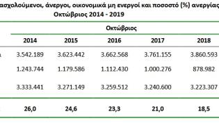 Η Ελληνική Στατιστική Αρχή (ΕΛΣΤΑΤ) ανακοινώνει τον εποχικά προσαρμοσμένο δείκτη ανεργίας για τον Οκτώβριο2019. Το εποχικά διορθωμένο ποσοστό ανεργ...