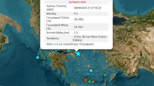 Πολύ ισχυρή σεισμική δόνηση μεγέθους 5,2 Ρίχτερ σύμφωνα με την αρχική εκτίμηση του Γεωδυναμικού Ινστιτούτου σημειώθηκε στις 12:27 μετά τα μεσάνυχτα στ...
