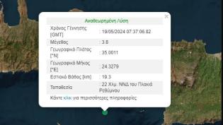 Σεισμική δόνηση σημειώθηκε το πρωί της Κυριακής στην Κρήτη. Σύμφωνα με το Γεωδυναμικό Ινστιτούτο, το μέγεθος η ένταση του σεισμού ανέρχεται στα 3,8 Ρί...