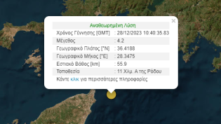 Σεισμός 4,2 Ρίχτερ σημειώθηκε σε θαλάσσια περιοχή 11 χιλιόμετρα ανατολικά της Ρόδου. Το εστιακό του βάθος ήταν 55, 9 χιλιόμετρα, όπως αναφέρει το Γεωδ...