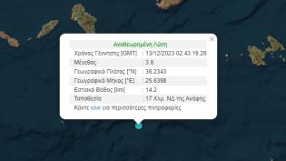 Σεισμική δόνηση σημειώθηκε το πρωί της Τετάρτης ανοιχτά της Ανάφης. Σύμφωνα με το Γεωδυναμικό Ινστιτούτο, το μέγεθος της δόνησης ήταν 3,8 Ρίχτερ εν...