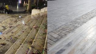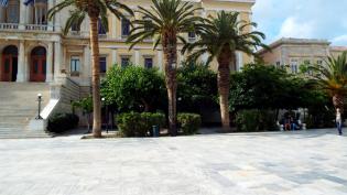 Καθαρό κατά το… ήμισυ, φαίνεται να είναι το κεντρικότερο σημείο της Ερμούπολης, η πλατεία Μιαούλη, αφού η καθαριότητα σταματά εκεί που ξεκινά η σκιά δ...