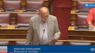 Ο βουλευτής Νίκος Συρμαλένιος καταθέτει αναφορά την επιστολή του Συλλόγου Γονέων και Κηδεμόνων Γυμνασίου ΤΛ Κορθίου Άνδρου στην οποία αναφέρονται οι ε...