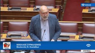 Ο Βουλευτής Κυκλάδων, Νίκος Συρμαλένιος κατέθεσε στη Βουλή αναφορά, επισυνάπτοντας τις επιστολές των Δικηγορικών Συλλόγων Σύρου και Νάξου, με θέμα τη ...