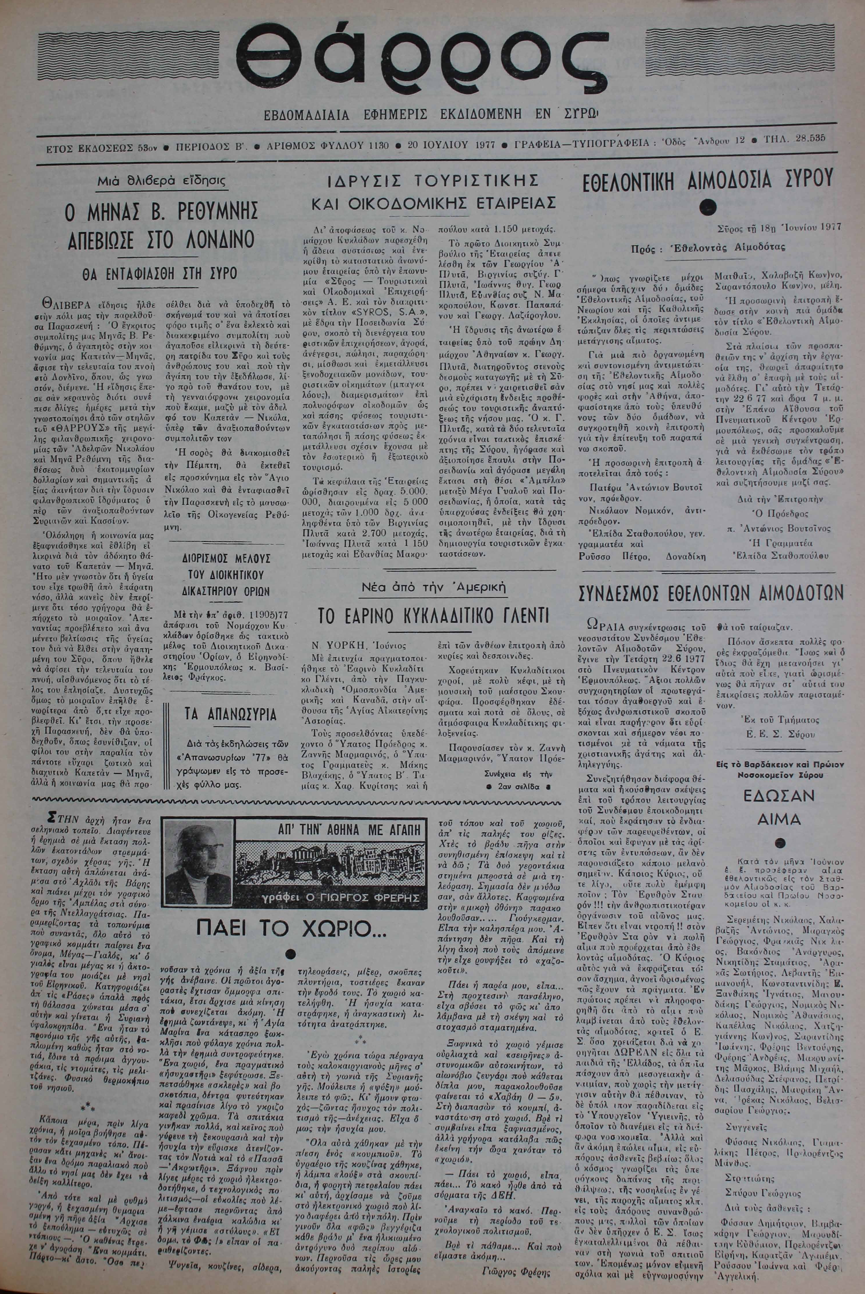 20 Ιουλ 1977 [Αρ. Φύλλου 1130]
