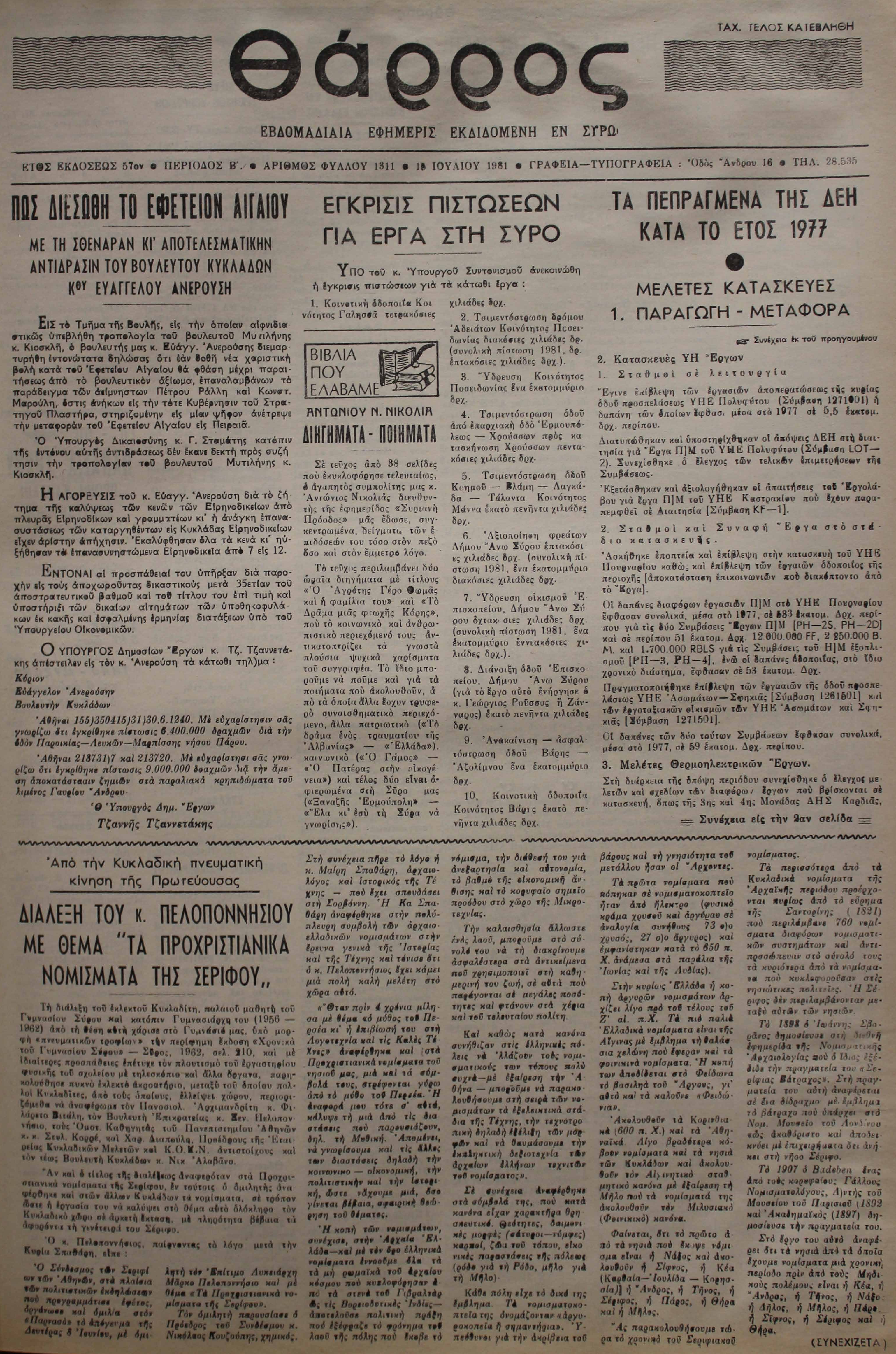 15 Ιουλ 1981 [Αρ. Φύλλου 1311]