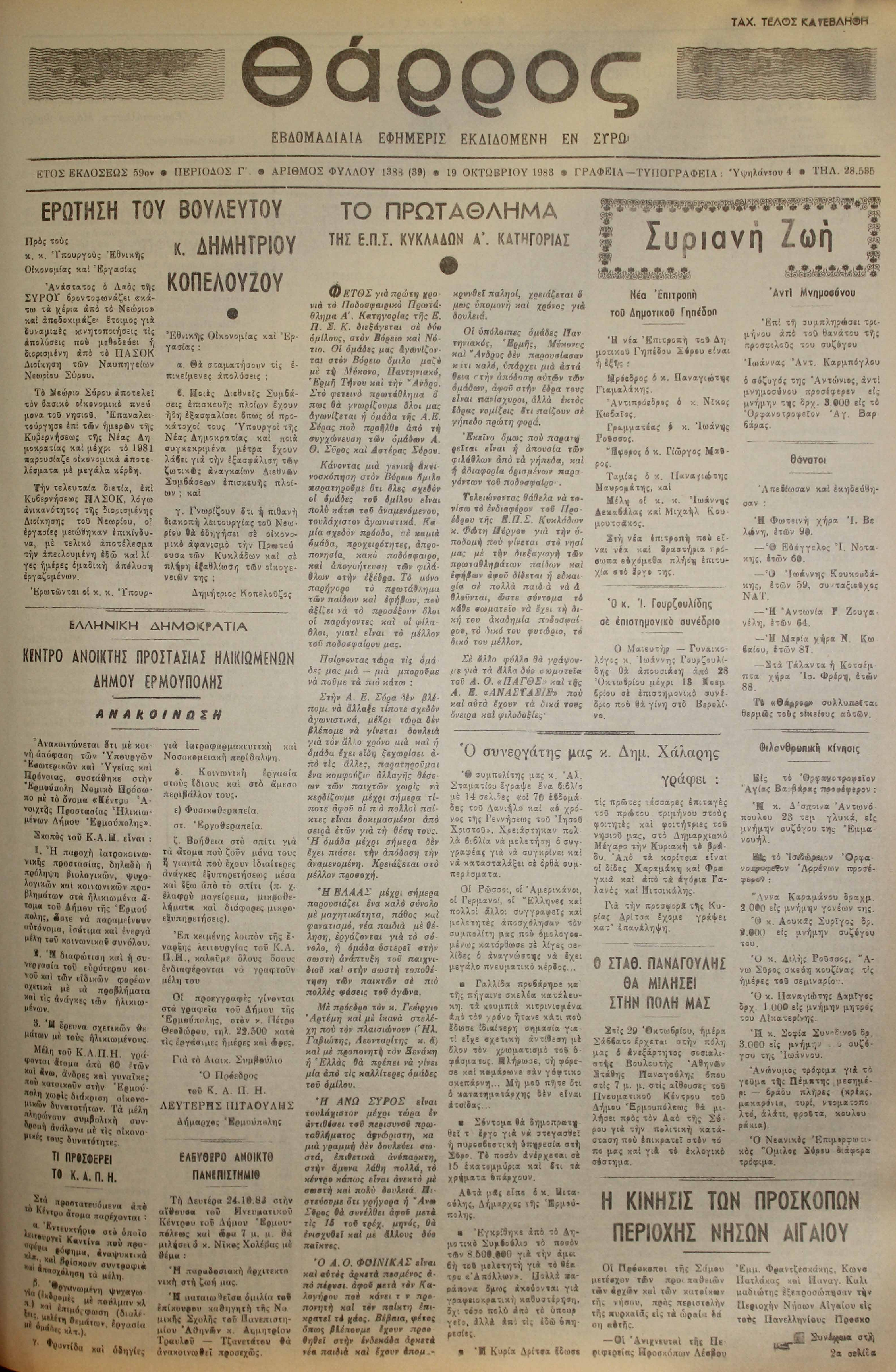 19 Οκτ 1983 [Αρ. Φύλλου 1388]
