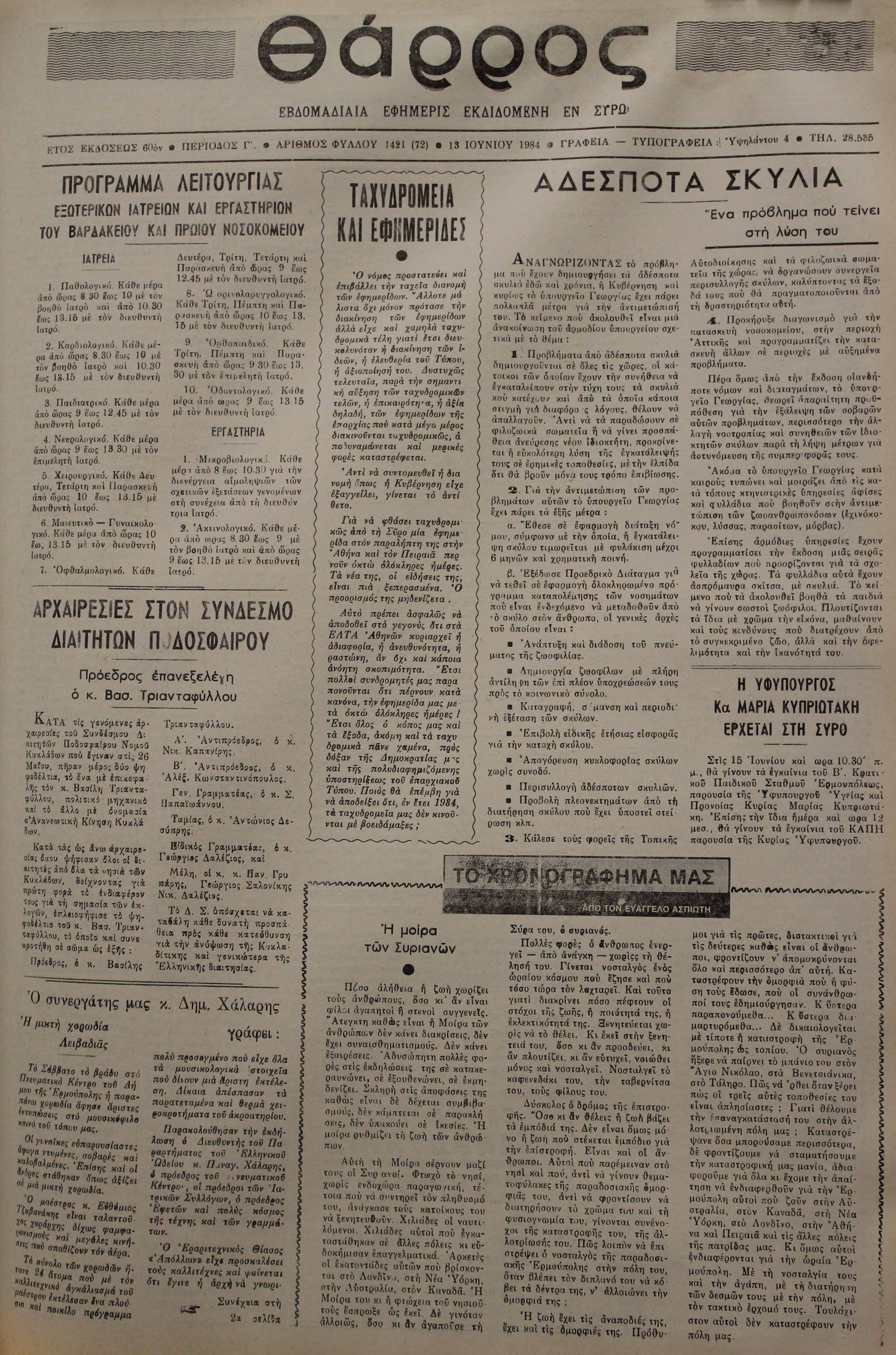13 Ιουν 1984 [Αρ. Φύλλου 1421]