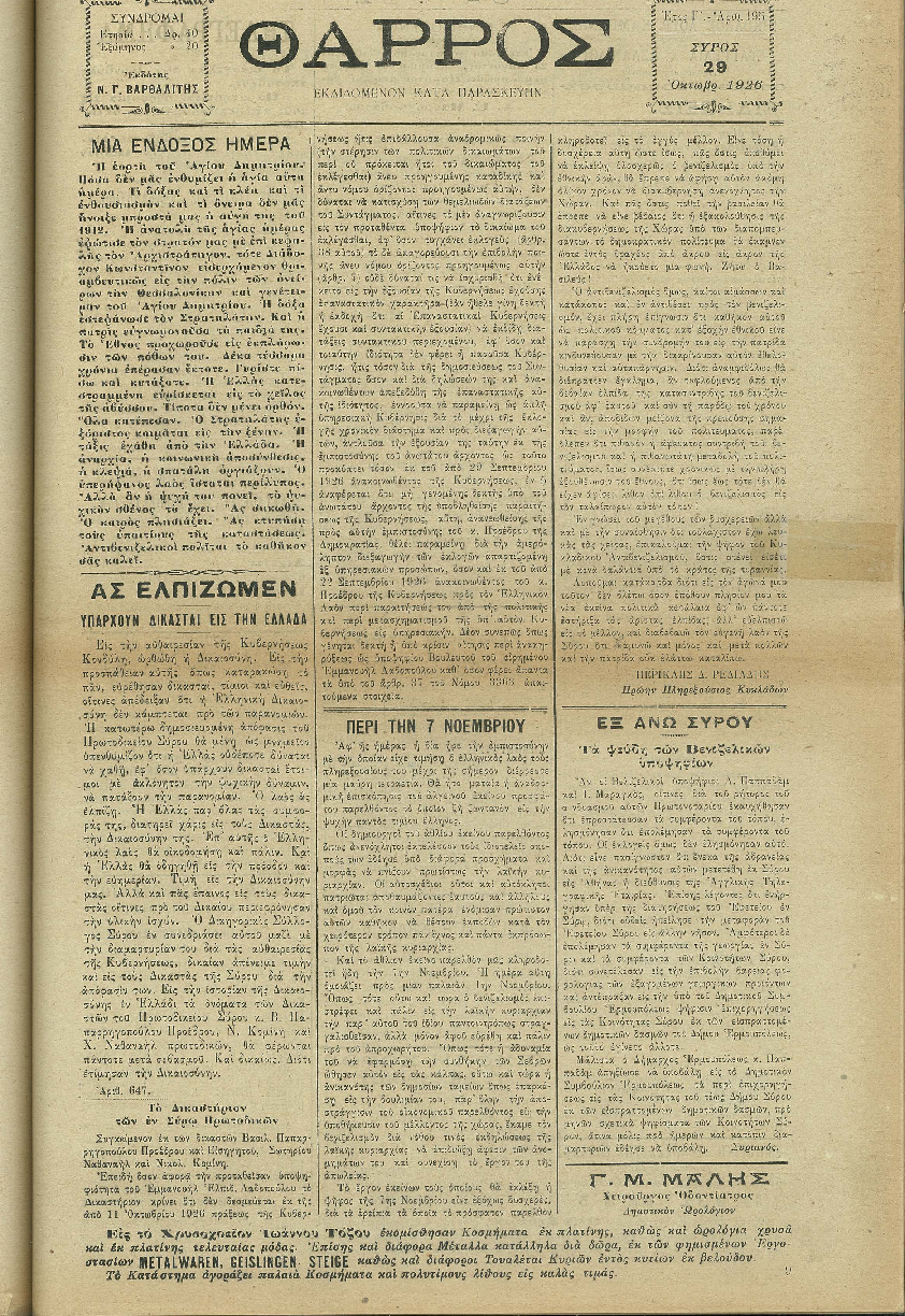 29 Οκτ 1926 [Αρ. Φύλλου 195]