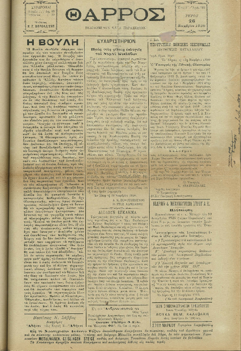26 Νοε 1926 [Αρ. Φύλλου 199]
