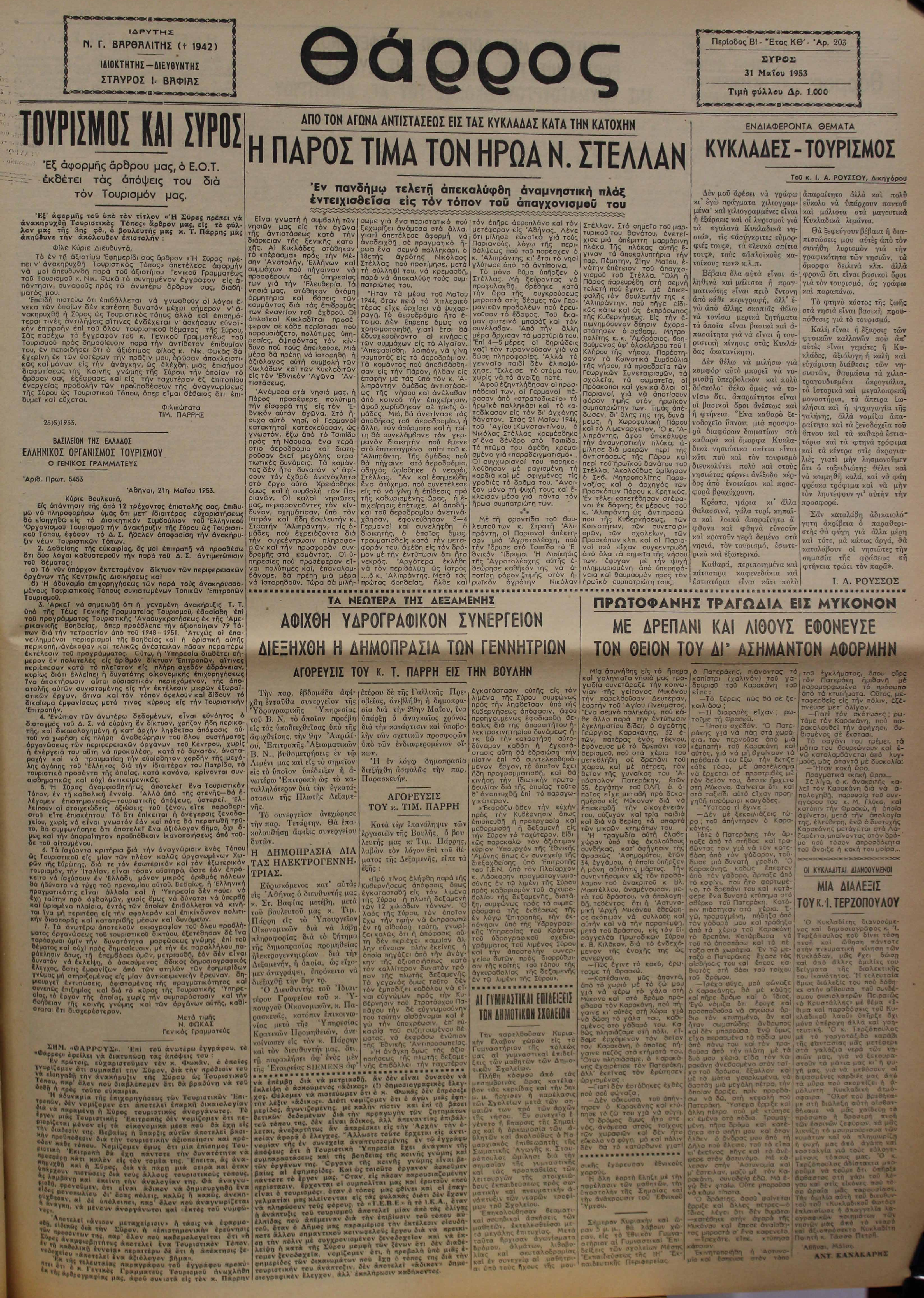 31 Μαϊ 1953 [Αρ. Φύλλου 203]