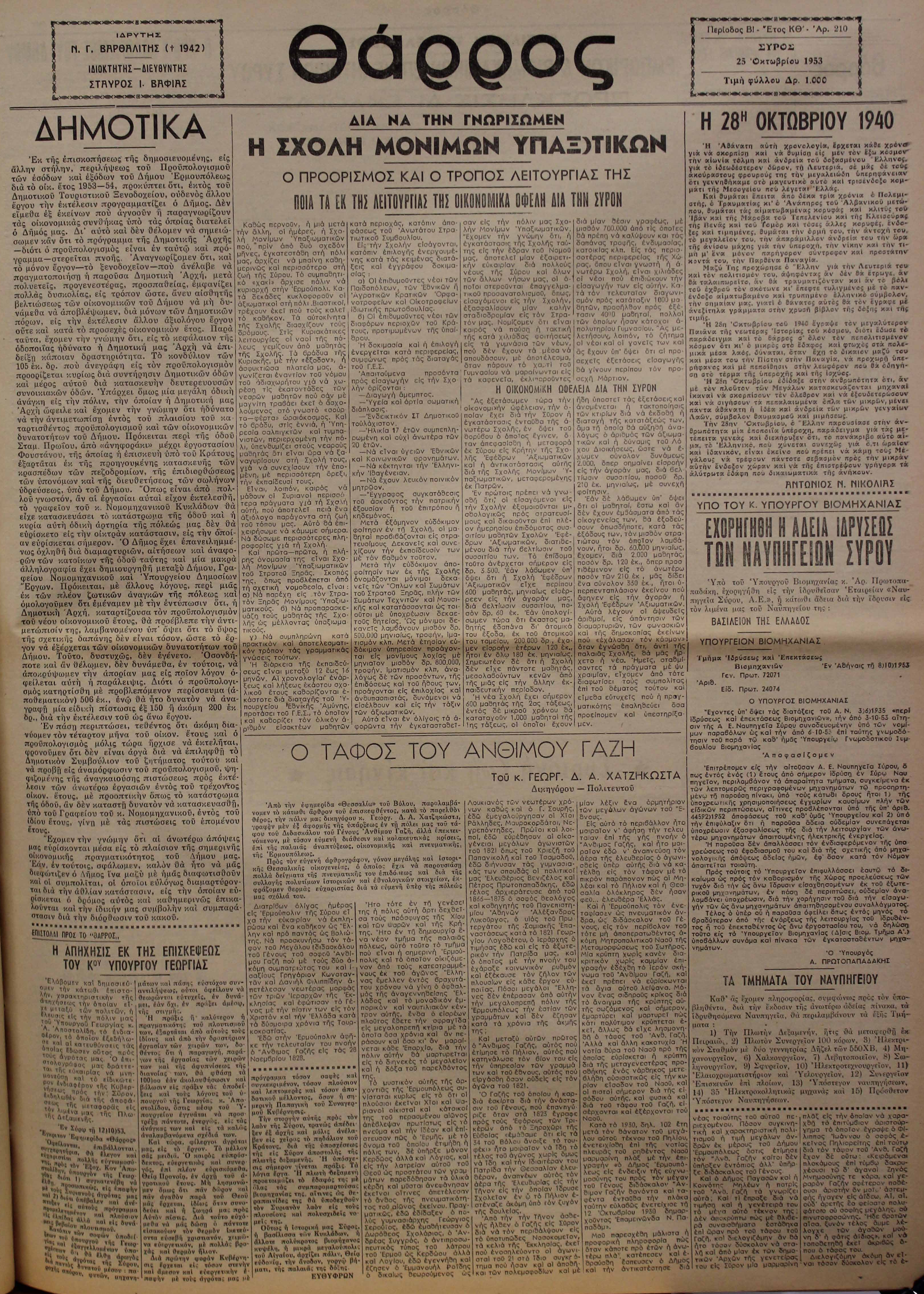 25 Οκτ 1953 [Αρ. Φύλλου 210]