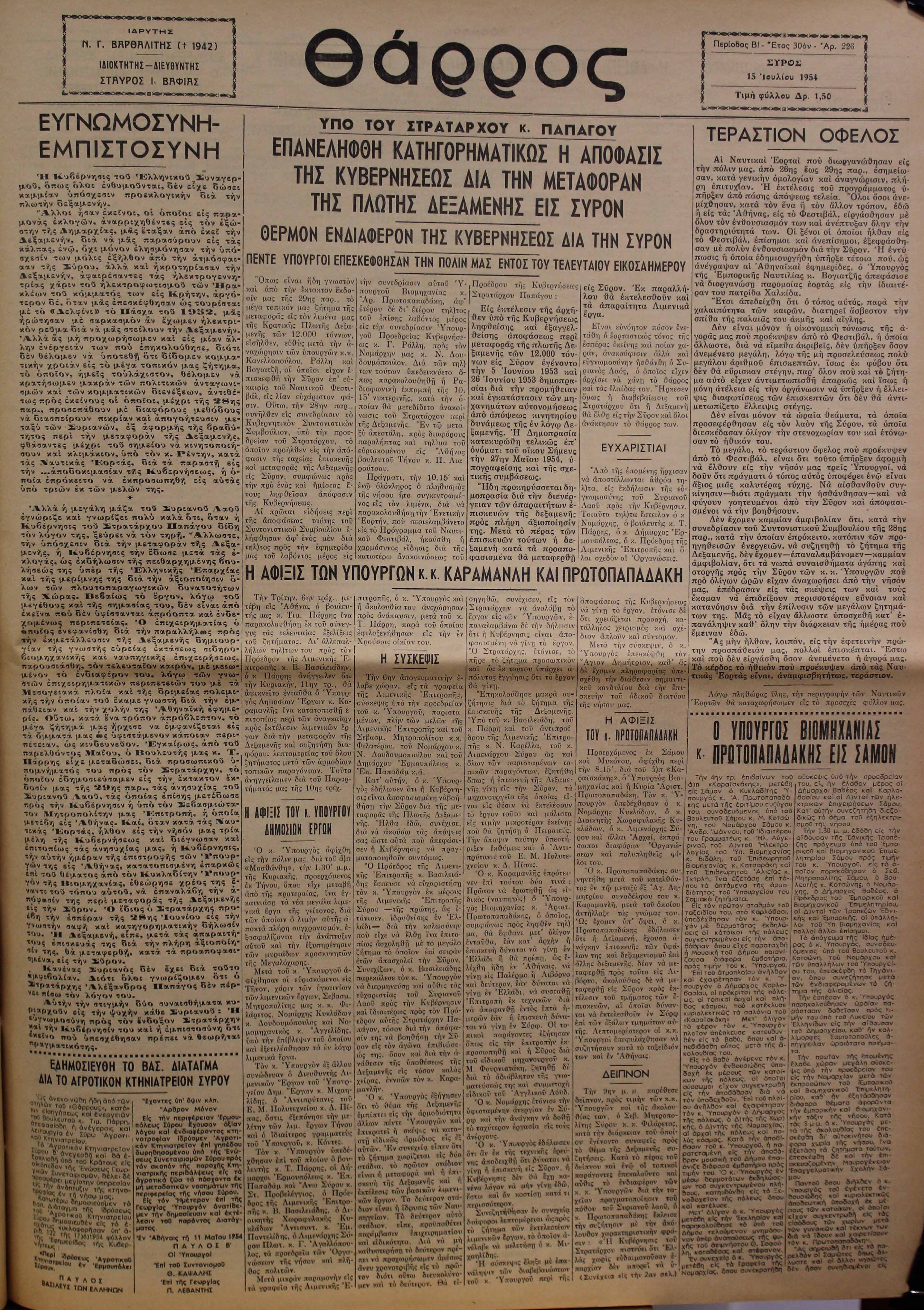 15 Ιουλ 1954 [Αρ. Φύλλου 226]