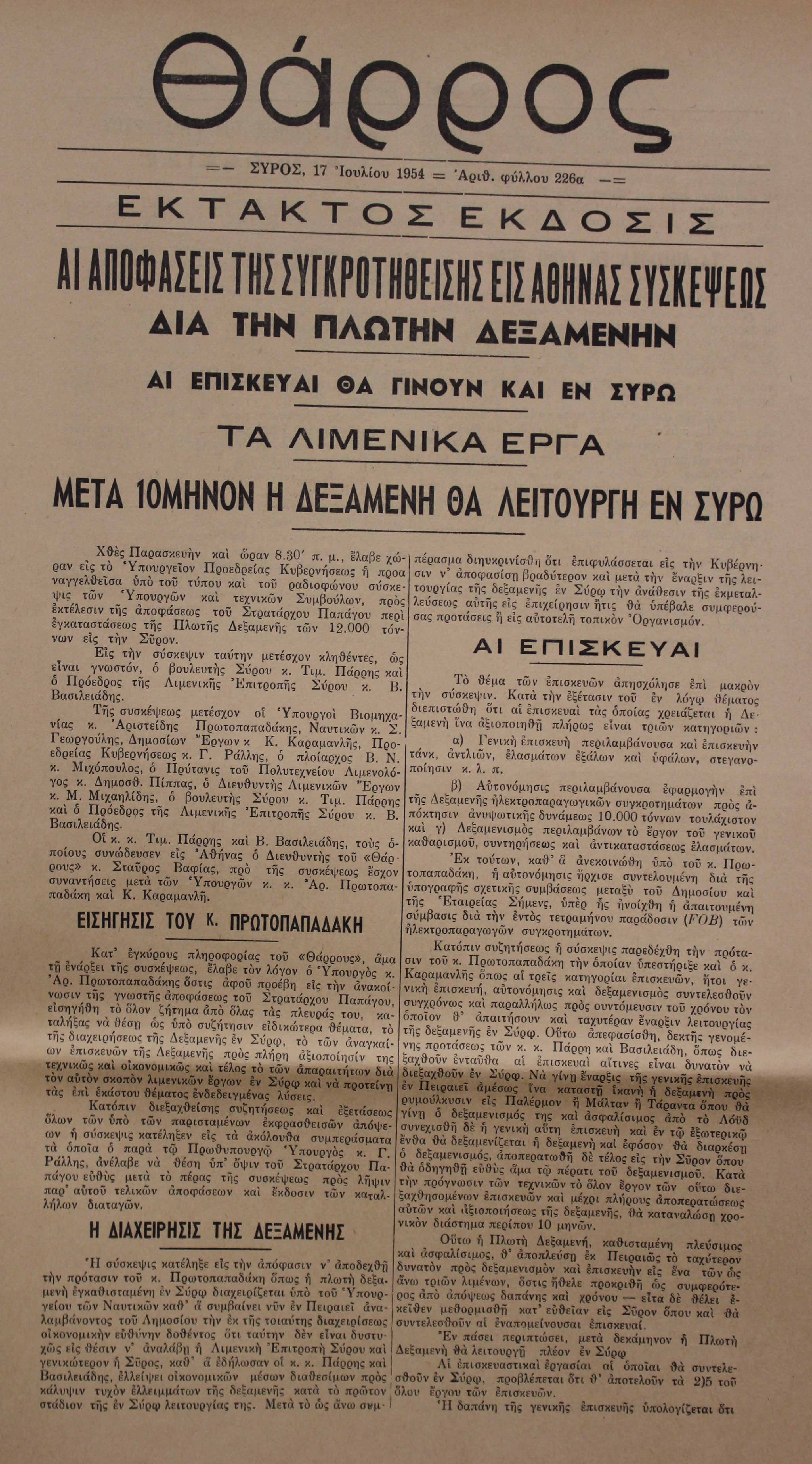 17 Ιουλ 1954 [Αρ. Φύλλου 226A]