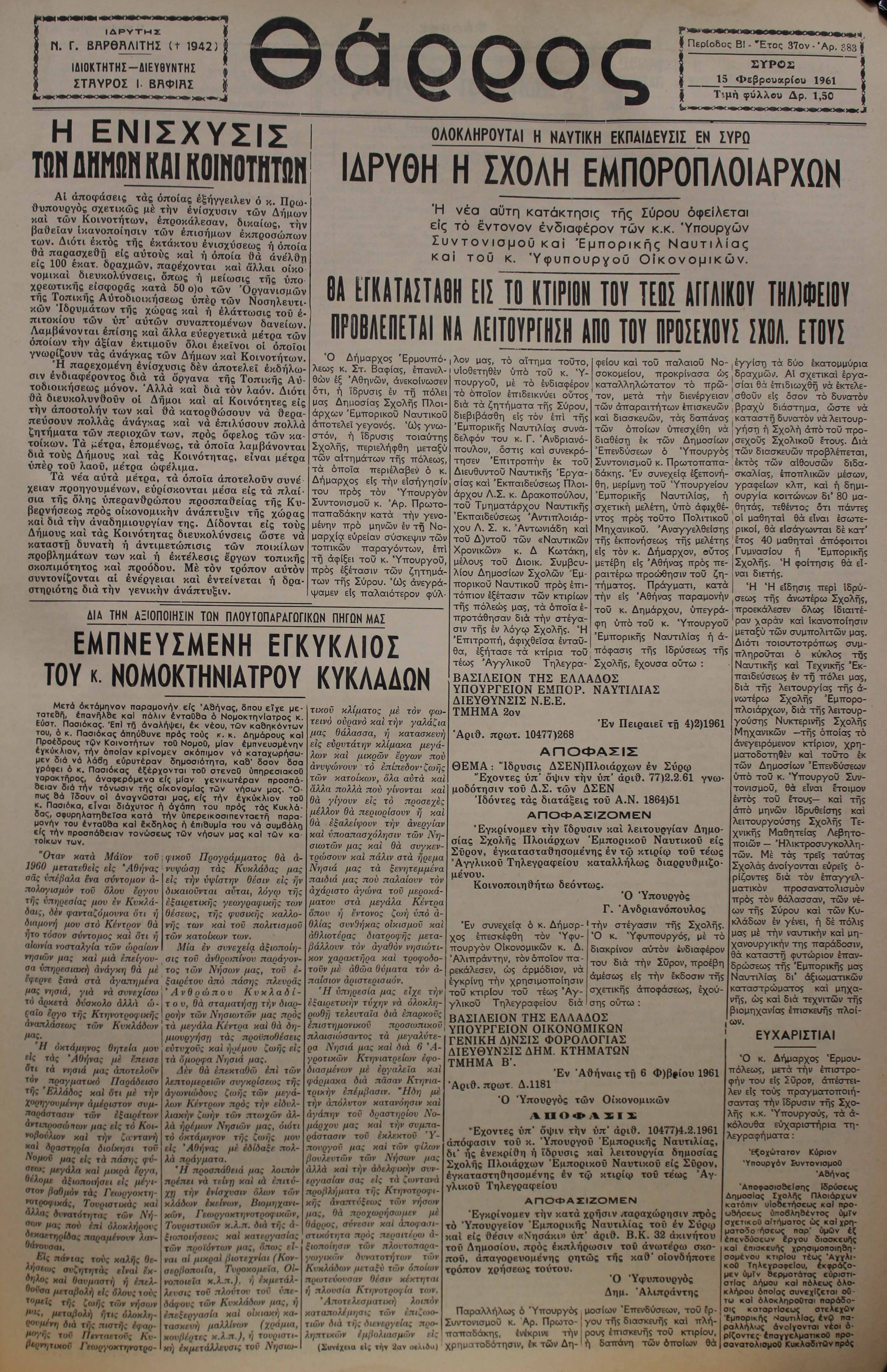 15 Φεβ 1961 [Αρ. Φύλλου 383]