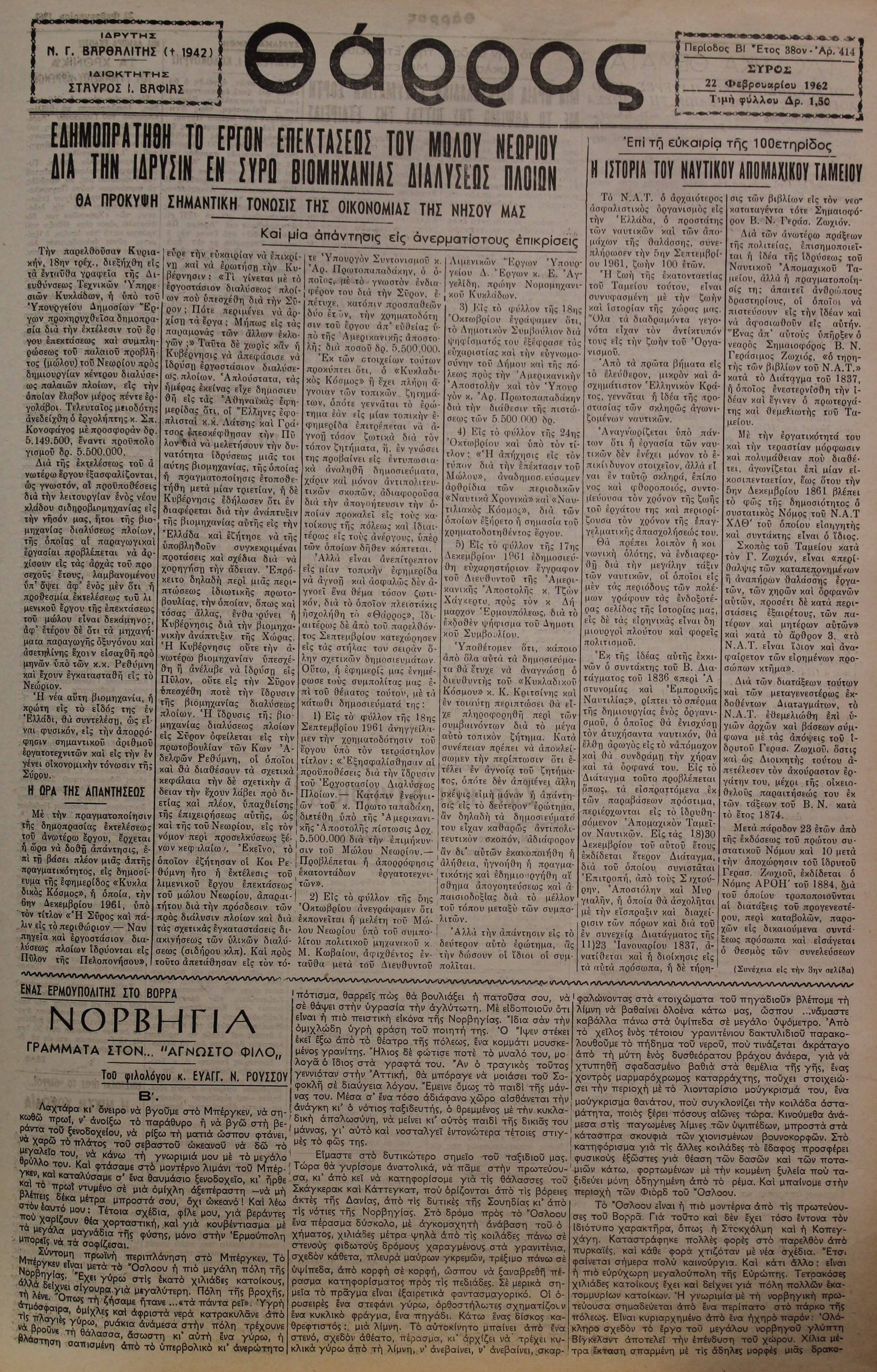 22 Φεβ 1962 [Αρ. Φύλλου 414]
