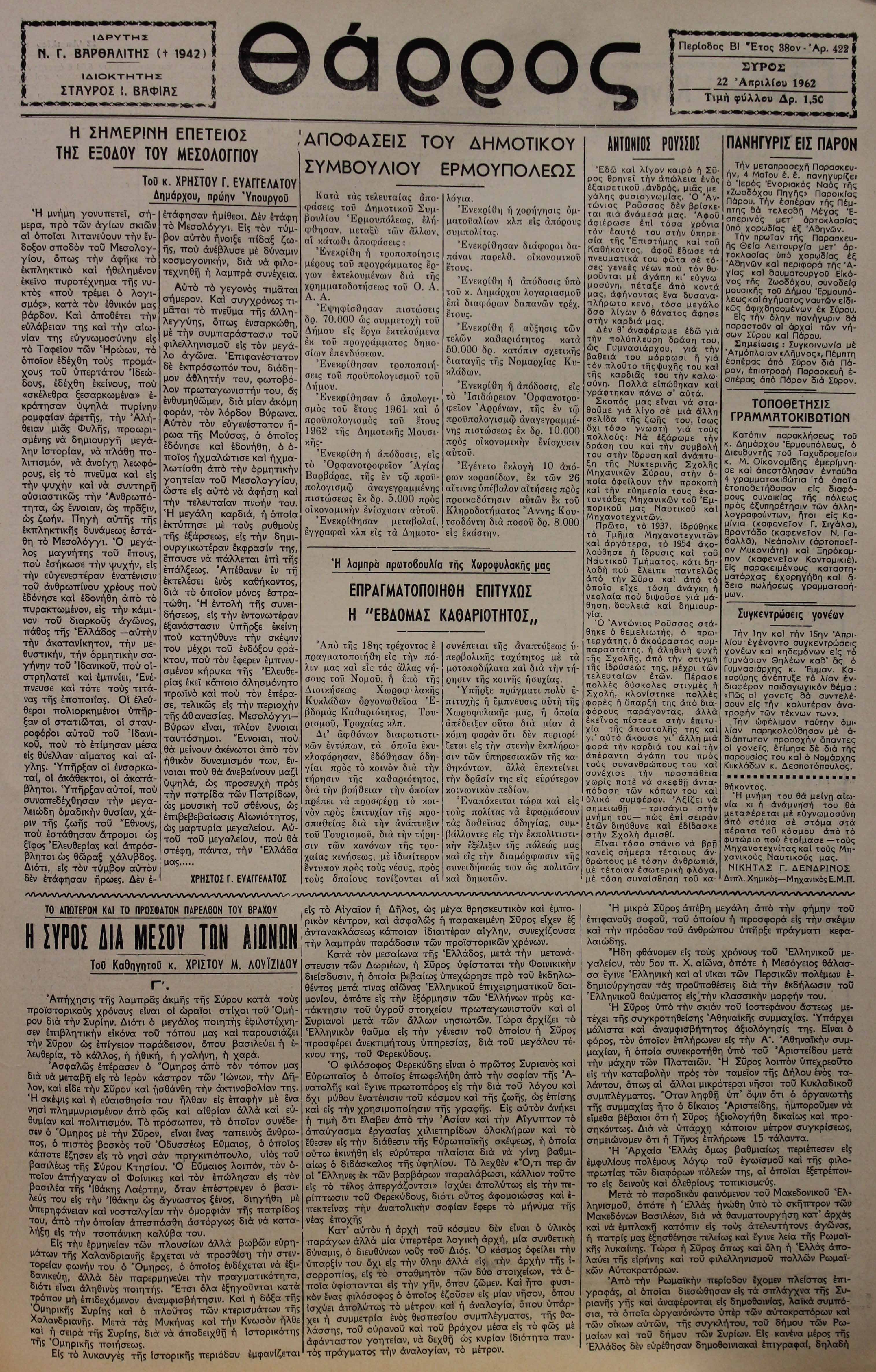 22 Απρ 1962 [Αρ. Φύλλου 422]