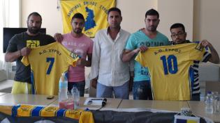 Χθες το μεσημέρι η διοίκηση του Α.Ο. Σύρου παρουσίασε τα νέα της μεταγραφικά αποκτήματα, τον Ιάκωβο Σταματίου και τον Γιάννη Ελκάντι, στο ξενοδοχείο “...