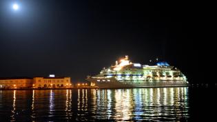 Πανσέληνος με φόντο το κρουαζιερόπλοιο στο λιμάνι της Ερμούπολης Καλούδης Κώστας