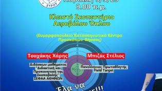 Ο Σκοπευτικός Όμιλος Σύρου σας προσκαλεί να παρευρεθείτε στο Open Day που θα πραγματοποιηθεί στο νέο Σκοπευτήριο Αεροβόλων Όπλων του Ομίλου (Ευμορφοπο...