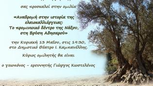 Ο Δήμαρχος Νάξου και Μικρών Κυκλάδων Μανόλης Μαργαρίτης σας προσκαλεί στην ομιλία «Αναδρομή στην ιστορία της ελαιοκαλλιέργειας: Το προμινωικό δέντρο ...
