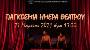 27 Μαρτίου 2021 Γιορτάζουμε διαδικτυακά, ζωντανά από τον υπολογιστή ή το τηλέφωνο μας την ΠΑΓΚΟΣΜΙΑ ΗΜΕΡΑ ΘΕΑΤΡΟΥ με μικρά θεατρικά στιγμιότυπα και μι...
